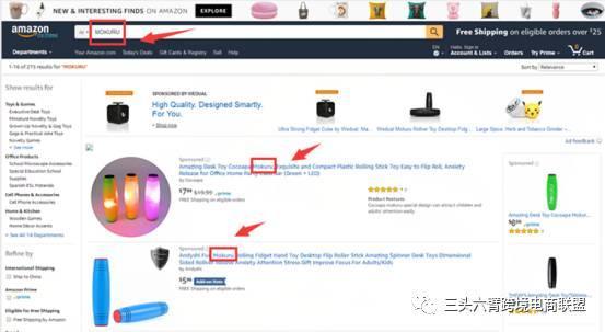 在Amazon官网搜索,输入“MOKURU”时,可以搜出不少非MOKURU正牌减压棒,但关键词上却是“MOKURU”字样。