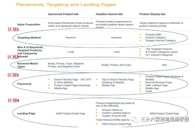对比大家熟悉的Sponsored Product广告,Sponsored Brands和Product Display最主要的区别是targeting方式的不同,关键词匹配形式,广告位不同,及着落页不同。