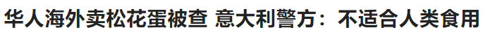 近日,华人海外卖松花蛋被查,意大利警方称“不合适人类食用。