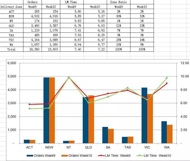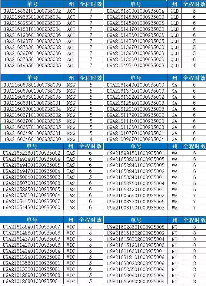 3月,有几个大卖来找我寻求帮助,需要中澳的专线类时效能达到5-7个工作日完成妥投的物流渠道,当时二话不说就推荐了ewe,不为别的,两个字靠谱,澳洲幅员辽阔,能做到5-7个工作日妥投达90%以上的毕竟凤毛麟角,废话不多说直接上卖家使用后的时效表: