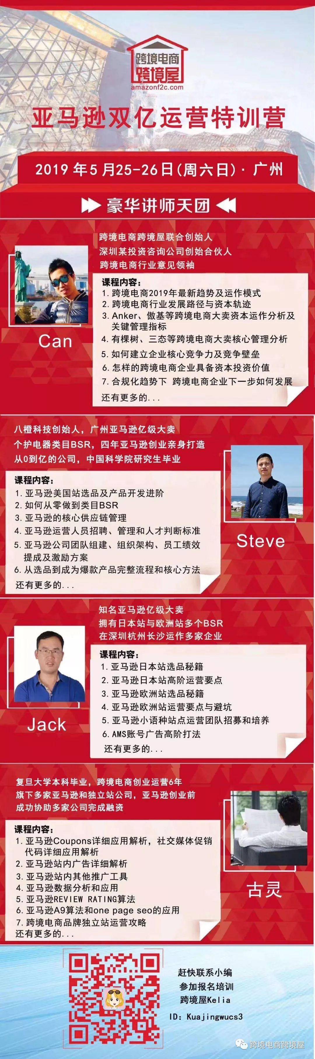 帮助跨境电商卖家在旺季取得成功,根据亚马逊最新的情况,跨境屋特别邀请了两位亿级大卖,再加两位高水准导师,从精细化运营的角度,为卖家提供最强运营支持 - 亚马逊双亿运营特训营!
