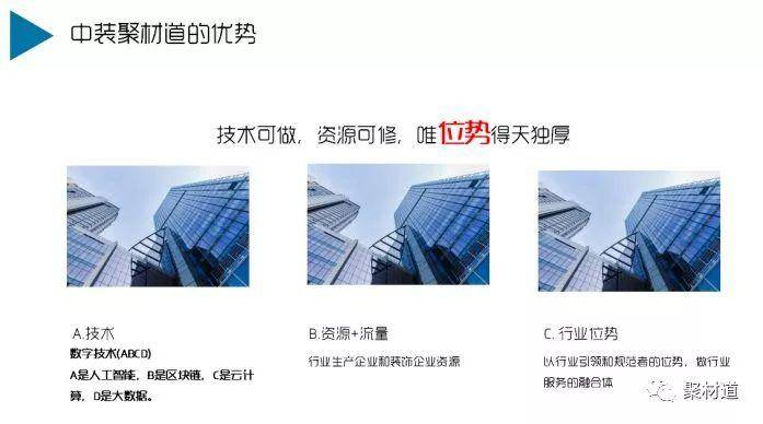 据介绍,这个过程的实现取决于聚材道的几个优势:一是拥有独立的技术团队;二是我们是行业生产企业和装饰企业资源的汇总者;三是我们以行业引领和规范的位势,做行业服务的融合体。正可谓技术可做、资源可修,唯位势得天独厚。