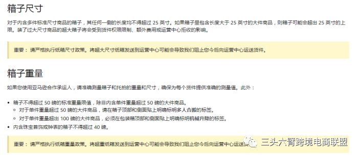 亚马逊对于补货到FBA仓库的货件,一向都是有硬性规定的。只要是操作过补货/发货的卖家基本也都模糊知道一些,但是少有人知道具体的数值,一般都是货代通知到卖家的,其实后台对此标准是有明文规定的。