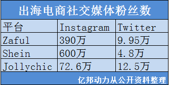 其中,环球易购旗下的服装独立站品牌Zaful在Instagram上的粉丝数高达390万,Twitter粉丝数达9.95万;服装独立站品牌Shein在Instagram上的粉丝数高达600万,Twitter粉丝数达4.8万;中东电商执御旗下独立站品牌Jollychic在Instagram上的粉丝数高达72.6万,Twitter粉丝数达12.5万。独立站品牌在社交平台上积累的粉丝数呈现出私域运营强大的客户积累能力。