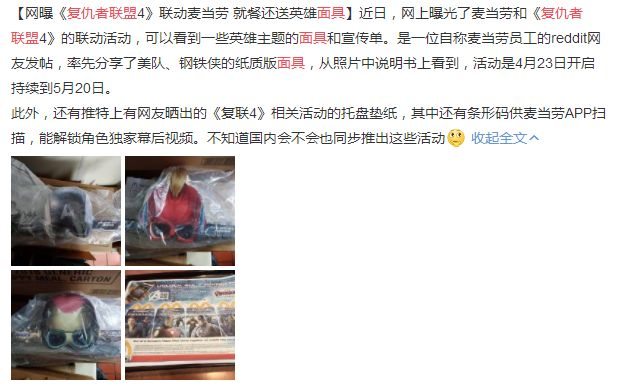 “紫薯精”面具是根据复联电影人物“灭霸”形象做的一款搞怪面具,算是一种影视周边,但是否有授权尚未可知。当一群“紫薯精”坐在影院看电影的时候,想想还是有点恐怖呢。不过,近期网传复联4和麦当劳倒跨界合作了一波,推出了包括钢铁侠面具、美国队长面具、蜘蛛侠面具等在内的周边,更有网友在推特上晒出相关托盘纸等。然而,对于卖家来说,这种大热的IP周边,当然是要蹭一波了。
