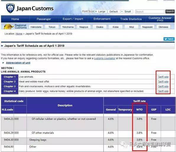 2019年4月最新版,同样是按照税则查询,看WTO成员国税率那一栏。