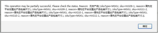 若是产品没有写包装尺寸,该计划是无法通过审核的,会出现以下提示: