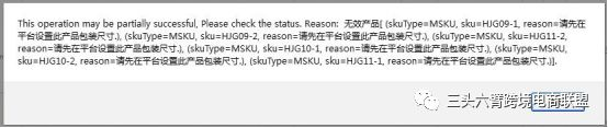 若是产品没有写包装尺寸,该计划是无法通过审核的,会出现以下提示: