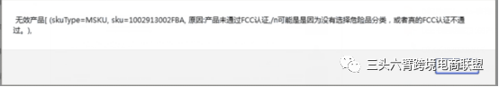 出现这样的提示是因为选择发FBA的产品有涉及违禁词汇或者是被亚马逊判定为危险禁售的产品。