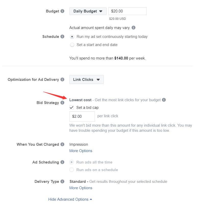 FB现在的广告竞价方式为: 最低成本竞价策略