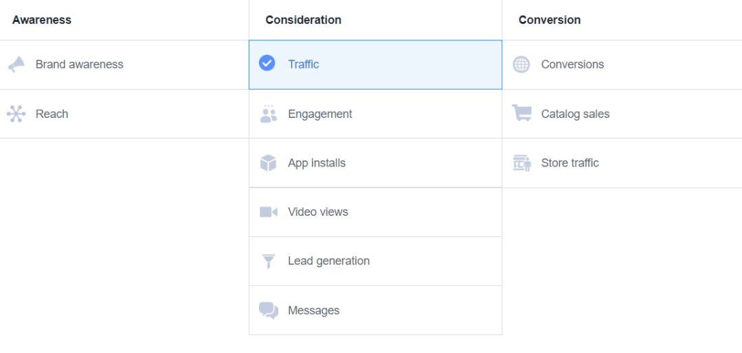 FB给广告提供给了很多不同的广告目标,你可以根据这些目标设置你自己的目标。