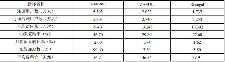 截至2018年12月31日,跨境通主要自营网站(Gearbest 、ZAFUL 、Rosegal)的运营数据如下:
