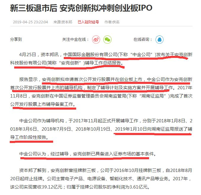 而且最近的一次向湖南证监局报送辅导工作阶段性报告是在2019年1月10日,辅导机构中金公司认为,安克创新已经具备进入证券市场的基本条件,进入到最后的冲刺阶段了。