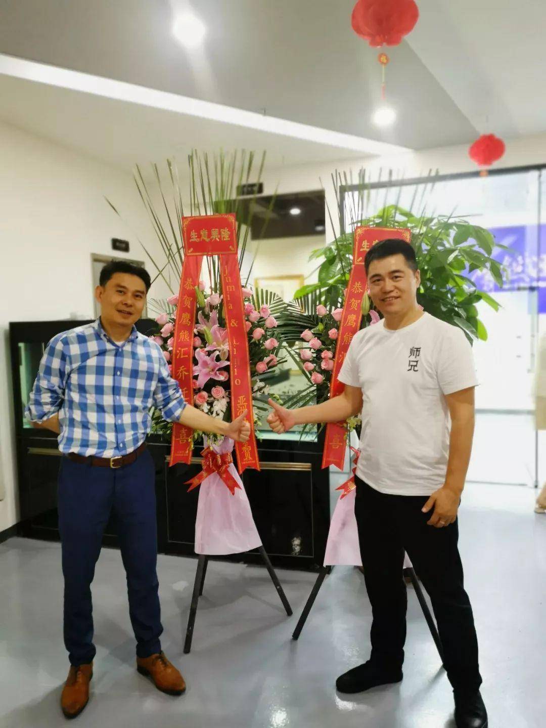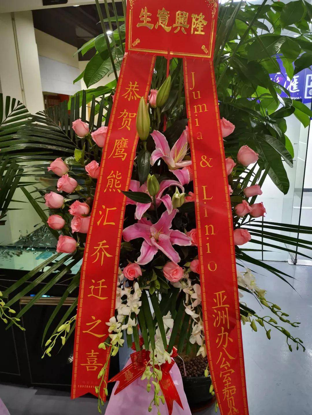 昨天刚刚忙完纽交所上市的Jumia平台和南美Linio平台的亚洲区办公室总经理王总从美国刚回来,就来到了咱们鹰熊汇办公室,王总特意说错过了鹰熊汇办公室开业的当天的喜庆,也还是要送一对花篮给咱们。真的太有心了……