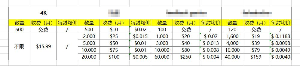 (4K和常见索评工具价格对比)
