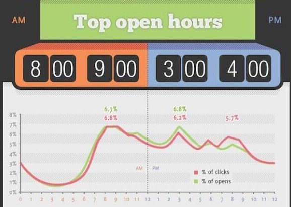 根据专业邮件营销机构的数据,用户点开邮件的高峰时段在当地时间上午8点到9点,下午3点到4点。所以,打开效果最好的发送时间,应该在高峰时段前1个小时之内。