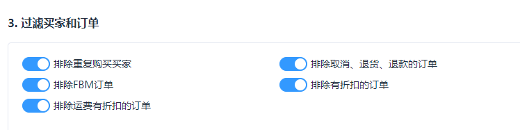 重复购买的买家,可能已经为相同产品留过评论,再去索评成功的概率很低,还可能让买家感到被骚扰,这类订单最好也排除。