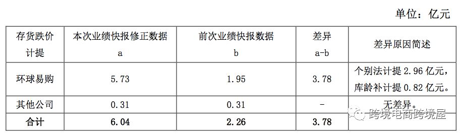 但是,在发布年度财报前,跨境通发布了公告,到2018年底,环球易购存货跌价计提达到5.73亿元!虽然营收规模过百亿,但巨额库存严重侵蚀了环球易购的利润。