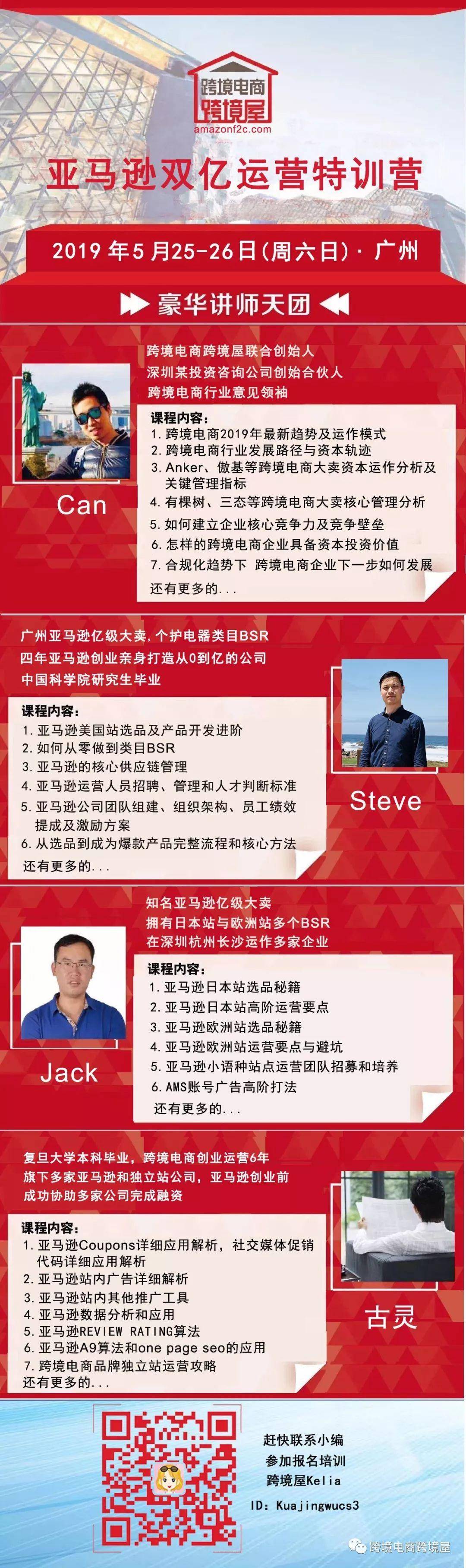 帮助跨境电商卖家取得成功,我们特别邀请了跨境屋联合创始人Can哥,个护Best Seller打造者、广州亚马逊亿级大卖Steve,深圳知名亿级大卖Jack,多个细分领域Best Seller企业老板古灵,从精细化运营的角度,为卖家提供最强运营支持,推出亚马逊双亿运营特训营!
