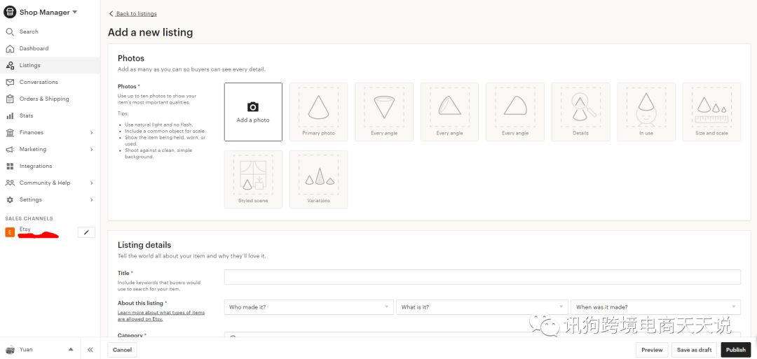 Etsy的后台是非常简单的,