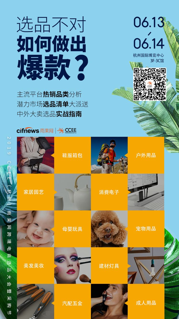 汇聚200+优质产商,20+主流平台热卖爆款,数百万SKU。60%的跨境人都是在这里选品的,打造爆款原来如此简单~2019CCEE(杭州)雨果网跨境电商选品大会报名火热进行中。点击阅读原文即可免费报名!