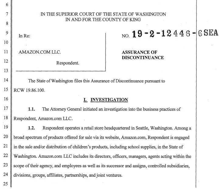据了解,亚马逊签署的这份具有法律约束力的协议被提交给了King County高级法院。