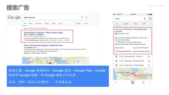 今天我们要用的是其中的搜索广告这个产品,也就是大家比较熟悉的Google AdWords广告。和亚马逊的PPC是非常类似的,也是按照点击付费。搜索页面也分为SEO自然排名和SEM付费排名。相信做过亚马逊PPC的朋友们,一定不会陌生,也能够很快的进行掌握。下面是一些关于搜索广告的介绍,大家可以看一看,了解熟悉一下。