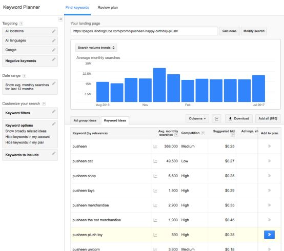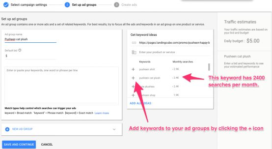 然后根据Google的keyword ideas里面的推荐,选择想要bid的关键词,这里其实和amazon的广告是一样的,各位应该不陌生: