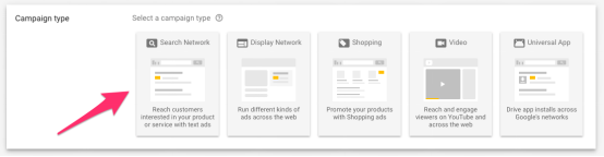 接下来根据我们的需求,选择其中的search network,这里Google shopping其实各位感兴趣也可以尝试一下,最近效果也会是比较猛的。