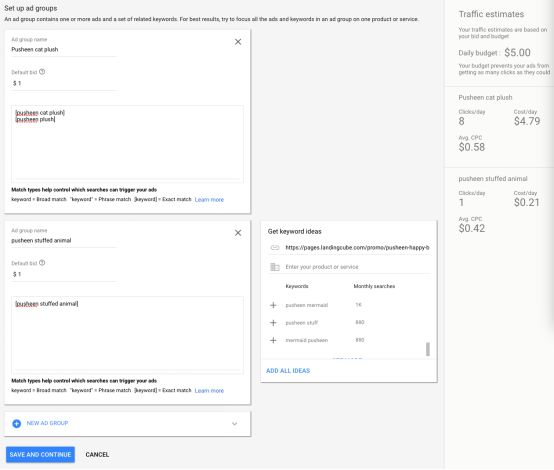 完成了campaign的创建以后,接下来我们进行创建ad groups, 这里很多基础设置的内容我就不详细讲了,大家玩过亚马逊PPC的应该都明白,不懂的也可以自己去看Google官方的help page: