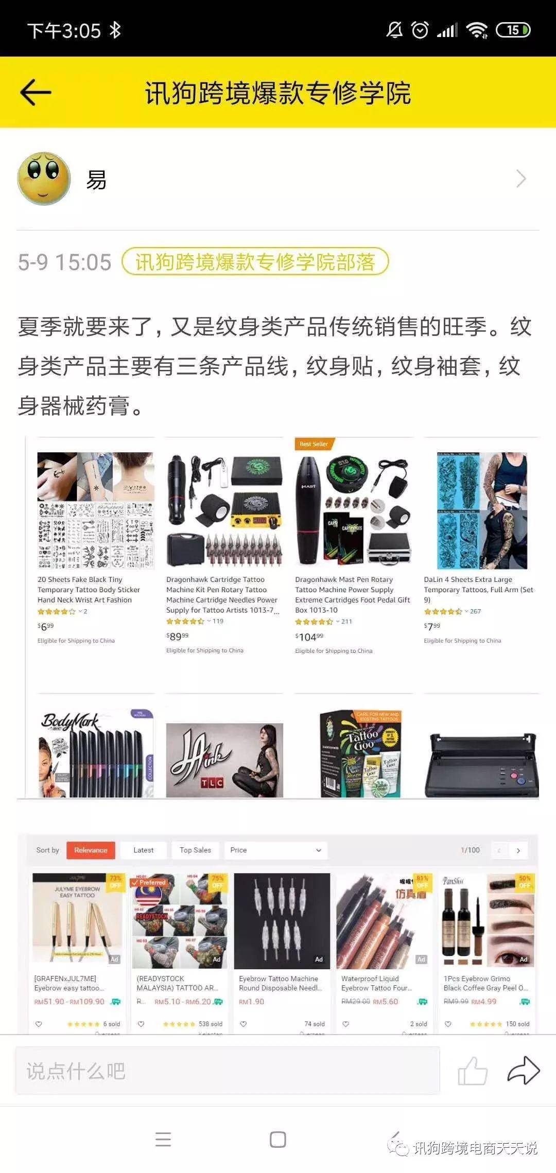 1)纹身类商品在跨境电商平台的机会