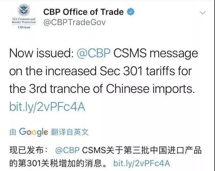 刚刚,美国海关与边境管理局(CBP)发出正式通知: