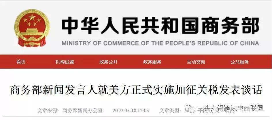 将于美国时间当地5月10日凌晨0点01分,即北京时间5月10日12:01分,对第三批共计2000多亿美元来自中国的商品,关税从10%提高至25%!