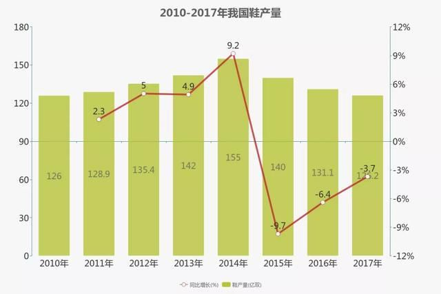 在加入WTO之后,中国鞋业进入发展的黄金时代,鞋产量和出口不断增长,成为世界制鞋中心。自2011年开始,世界经济复苏缓慢,中国鞋业开始了艰难的转型调整期。