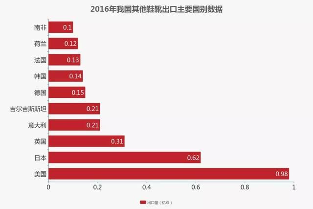 2016年,中国对非洲鞋类出口35.75亿美元,占中国全部鞋类出口的7.57%。除南非、津巴布韦等南部非洲及埃及、摩洛哥等北部非洲的部分国家外,非洲的大部分地区仍然非常贫困,经济落后,人民生活水平很低,非洲大部分地区主要消费低档次的鞋。