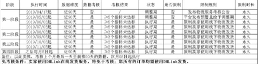 值得一提的是,若卖家使用DHLink在线发货服务,将免于考核。