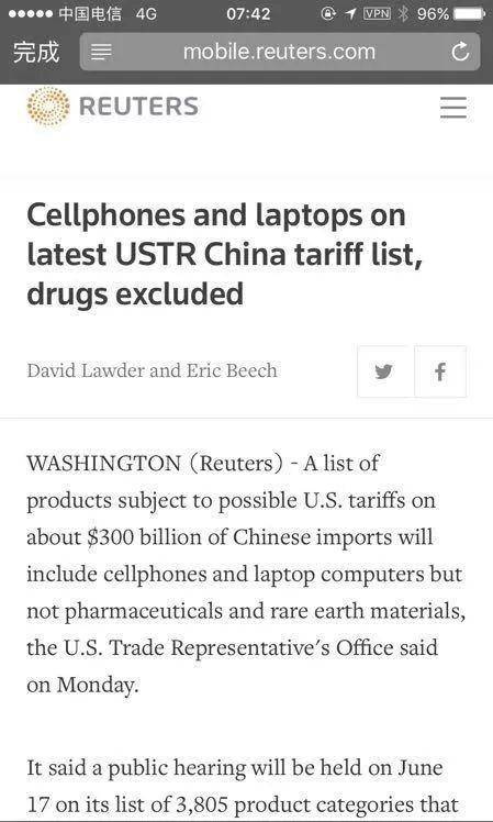 昨天,美国贸易代表办公室(USTR)发布公告,将就约3000亿美元中国商品加征25%关税征求意见并举行公开听证会。USTR还在附件中公布了包括手机、电视、玩具、太阳镜、日用品等在内一份涵盖3805种产品的征税清单。(在公众号内回复“3000关税”,可获取最新3000亿加征清单详情。)