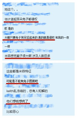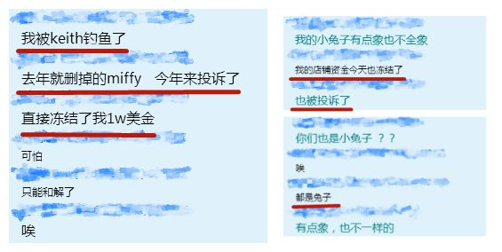 还有卖家称还有更夸张的,自己朋友的产品都是那种大兔子,和米菲兔一点边都不沾,也被冻结了;还有卖家说以后兔子的耳朵都不能竖起来了,一竖起来就侵权……