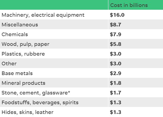 (包括石膏、陶瓷、珍珠和其他种类产品的年度关税。来源:Peterson Institute International Economics)