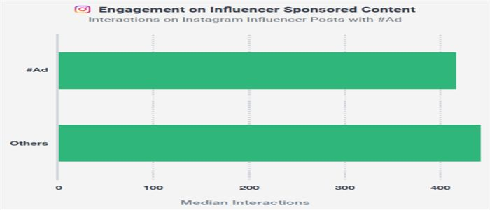 在过去的一年中,在拥有一百多万粉丝的名人网红中,超过四分之一在其赞助内容中使用了#Ad主题标签,比2017年增加了133%。该报告发现,带有#Ad标签的帖子与没有Ad标签的互动数量差不多。
