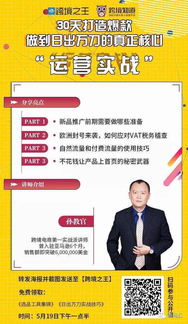 为了帮助新人更好的理解选品的运作机制,5月19日(本周日)下午一点半,跨境圈实战派导师@孙教官莅临公开课现场。