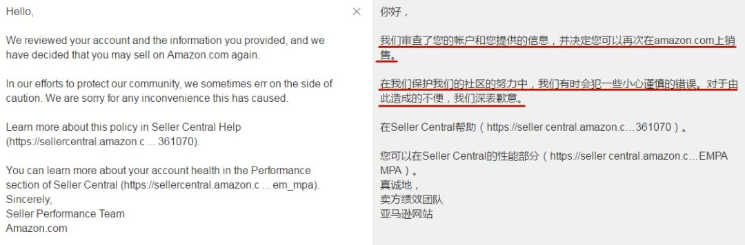 不过让卖家们值得欣慰的是,账号居然自动解封了,姐夫也发来了道歉的邮件,邮件中讲到:“在我们保护我们的社区的努力中,我们有时会犯一些小心谨慎的错误。对于由此造成的不便,我们深表歉意。”
