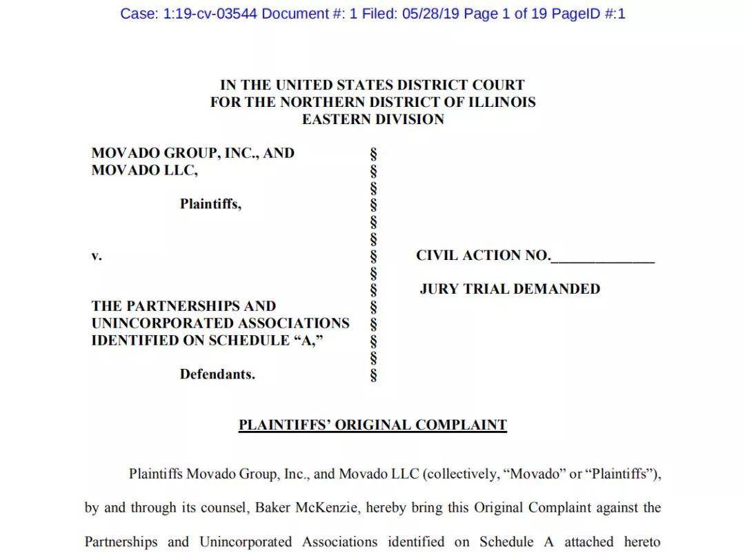 该案于2019年5月28日提起诉讼,案件编号为Case: 1:19-cv-03544。本次是该手表品牌的首次维权。案件信息如下: