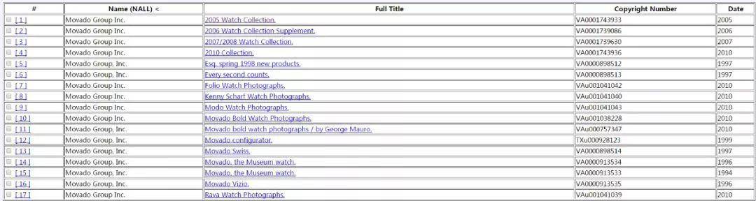 虽然本案只是起诉商标侵权,但实际上MOVADO手表的多个设计图形都进行了相应的版权登记,其中最有标志性的是:Museum博物馆设计图形。如下图↓