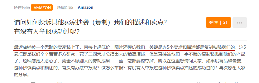 近日,小编看到有卖家爆料自家产品的listing被人抄袭,评论里的卖家纷纷附和遇到同样遭遇,有的卖家甚至还爆出有的人连评论都会抄袭,这可真是让人大开眼界。一般遇到这种被侵权的情况,卖家们会如何应对呢?