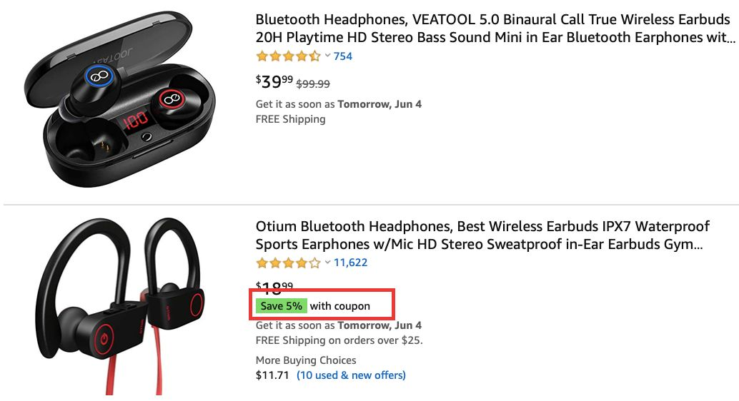 原因在于:当你对一条Listing设置了优惠券,在搜索结果展示页,这条Listing会比其他Listing多了一个标识,而这个标识无疑可以让设有优惠券的Listing更加显眼,可以提升消费者的点击率。