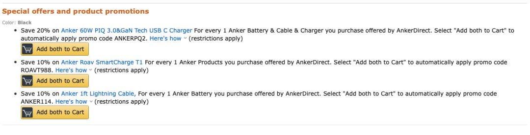 站内的促销(Promotion)是不具备上述功能的,一条Listing设置促销与否,在搜索结果页是完全看不出来的,只有当消费者打开一条Listing的产品详情页,才能够看到一条Listing是否设置了促销以及与谁一起的促销。