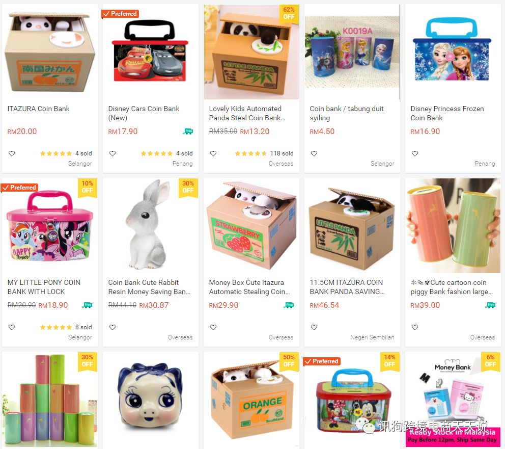 我们随意找了个Coin bank(存钱罐)的关键词去搜索,