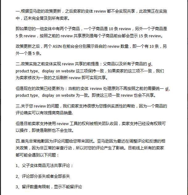 而且,亚马逊为了严厉打击此类行为,按照官方说法,可能到后面正规操作的父子变体合并以后,review也不会共享了。这个对一些做服装类目的卖家来说,真的是一场灾难!