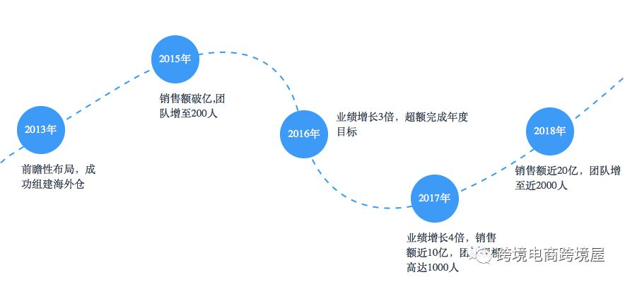 易佰2015年营业收入破亿,2016年业绩增长3倍,2017年营业收入近10亿,2018年营业收入接近20亿,员工近2000人,形成一条完美的增长曲线。(数据来源:易佰官网)